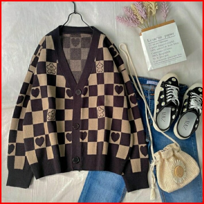 Monic Erze Store - Monic Cardigan Kotak Love Knit.premium Rajut Erze Store