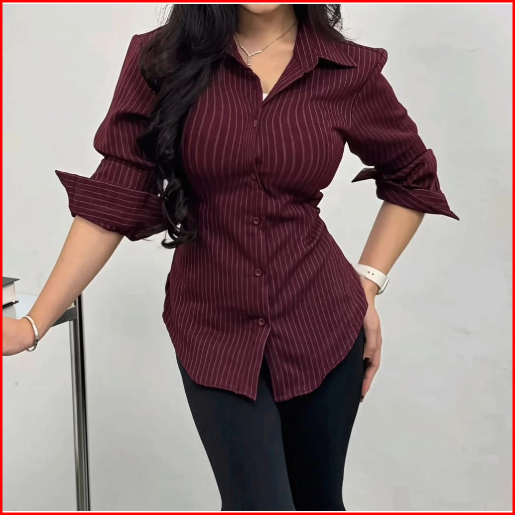 Kemeja Wispie Atasan Wanita Motif Salur Fitted- Luna Stripe Kemeja Wispie Slim Fit Body Korean Style