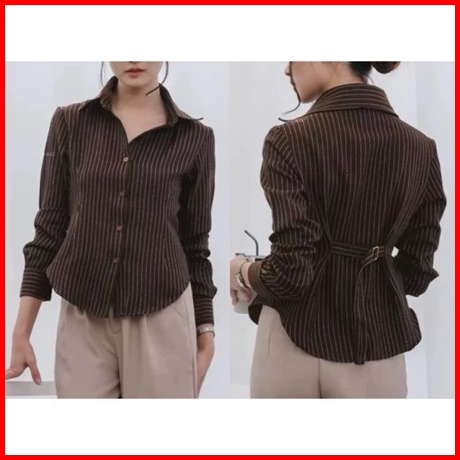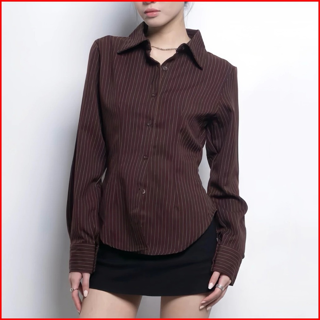 Promo Kemeja Wanita Slim Fit Body Kekinian - Kemeja Wispie - Atasan Wanita Stripes Terbaru