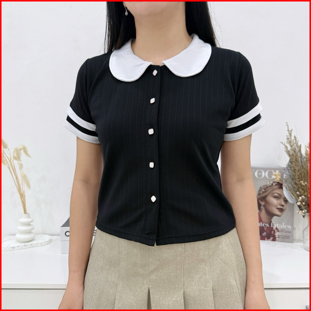 Enmei Coral Top 801- Crop Top Wanita - Atasan Blouse Wanita - Kaos Knit Korean Wanita - Style Korean