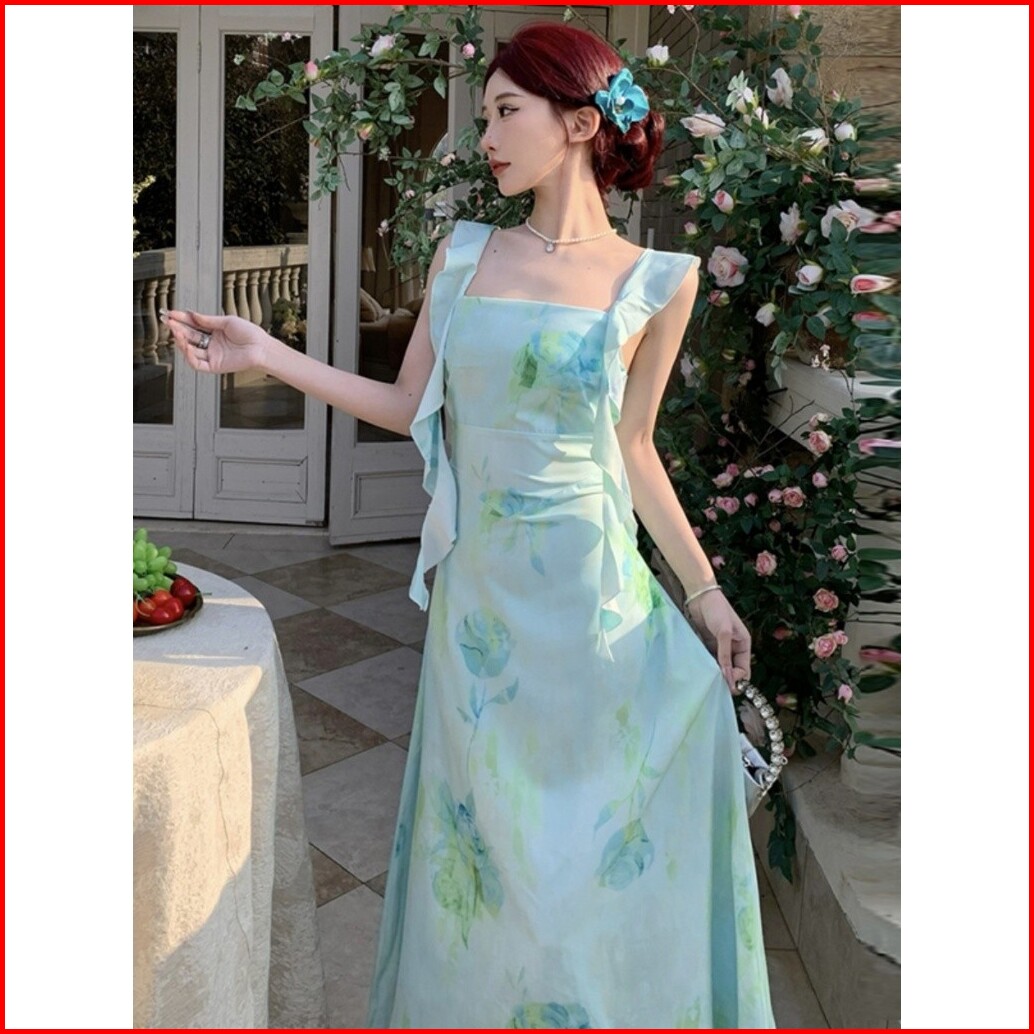 Emita Bloom Midi Dress Tanpa Lengan Motif Bunga Bunga Terbaru 2025 Jumbo Korean Style Bigsize Wanita Flowy Dress Pantai