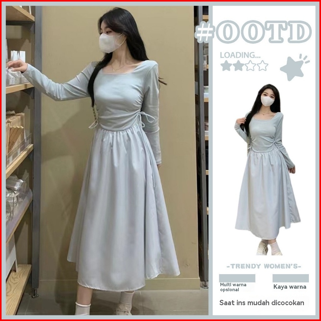 Dress Korean Style Dress Lebaran Long Dress Korean Style Vintage Dress French Vintage Elegance 2024 Gaun Temperamen Ping
