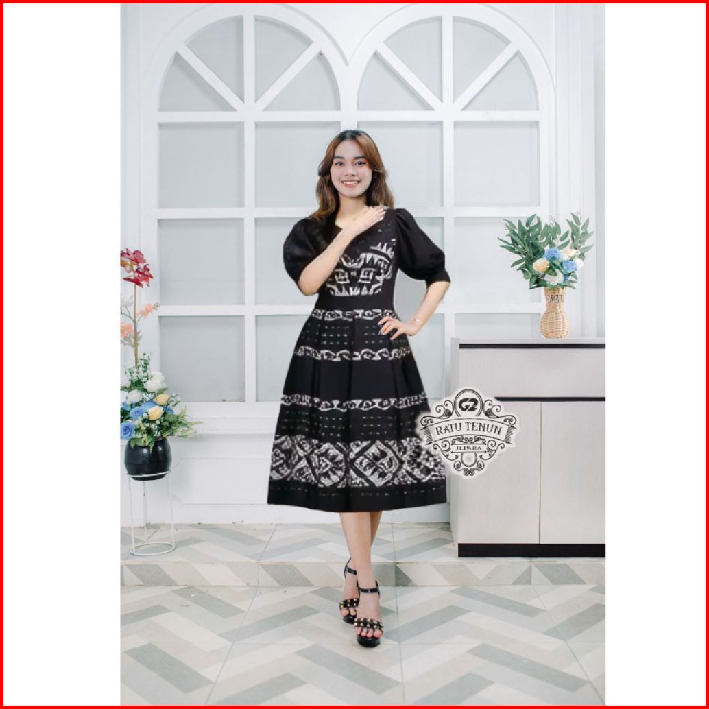 Set Couple Dress Tenun Selvia Dress 7 8 Dress Selutut Gaun Pesta Baju Kantor Baju Natal