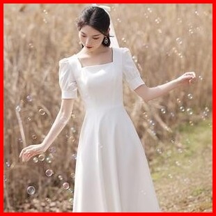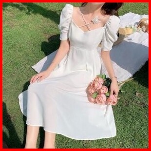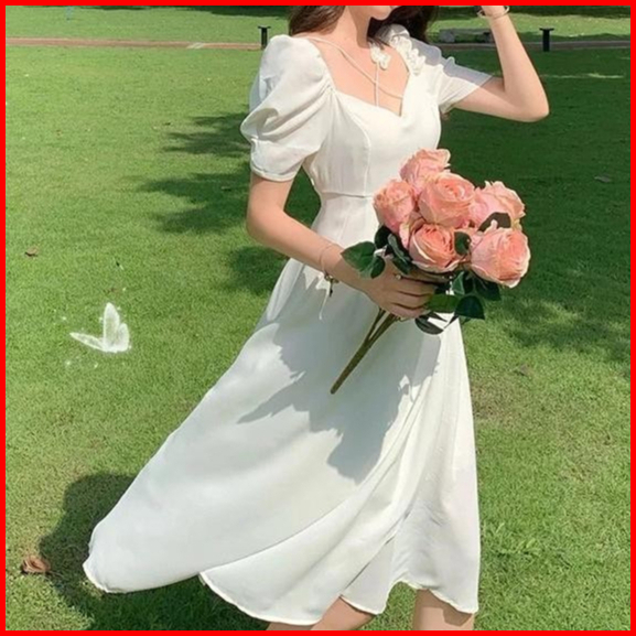 Baju Midi Dress Terbaru 2025 Dress Kondangan Dress Putih Wanita Vintage Korean Style Elegant Princess Lengan Pendek Casu