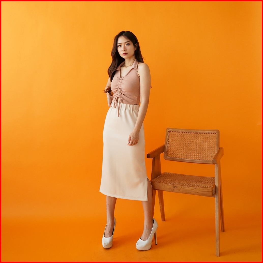 Oroy Korean Tanktop Serut Kekinian Crop Tank Top Korea Rajut V-neck Crop Top Or1190
