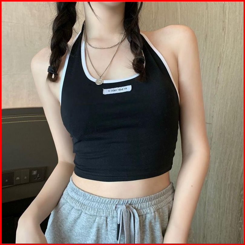 Tanktop Tali Halter Melingkar Di Leher Bahan Rajut Adem Melar Model Korea T204 - Atasan Wanita Tanpa Lengan Lingkar Lehe