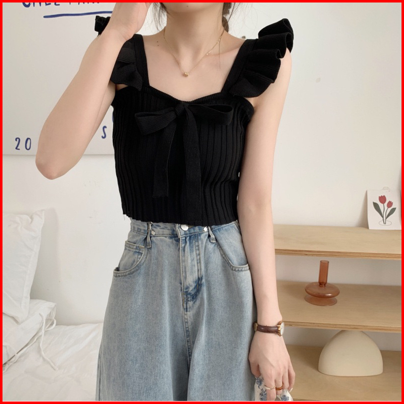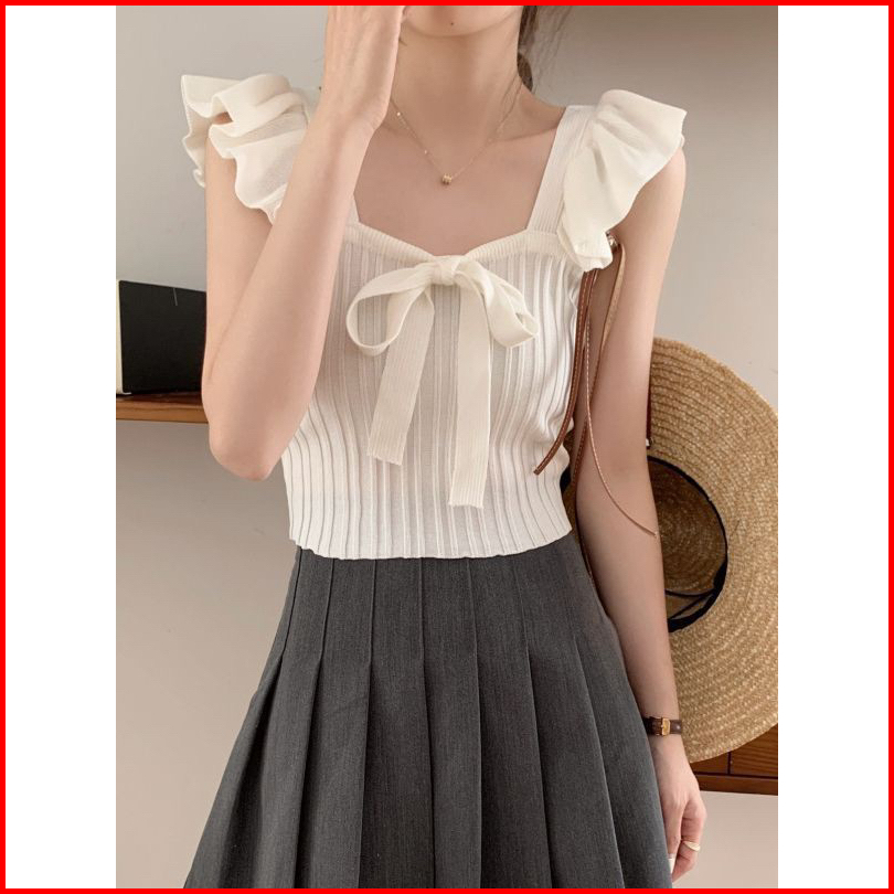 Tanktop Wanita Beach Wear T146 Pita Atasan Tanktop Wanita Pantai Tank Top Crop Ruffle Korean Style