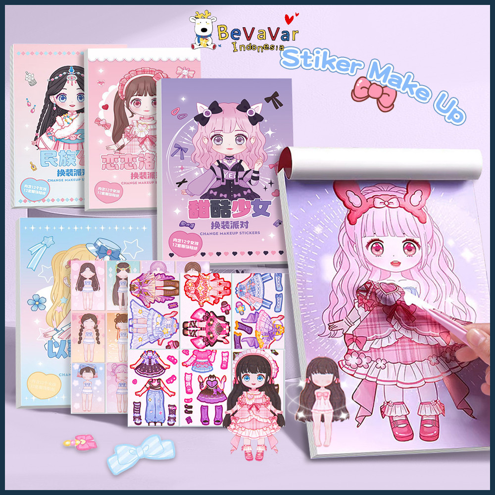 BEVAVAR Stiker Berdandan Make-Up Princess Style Stiker Diy Stiker Lucu Kartun Berdandan Anak Perempuan