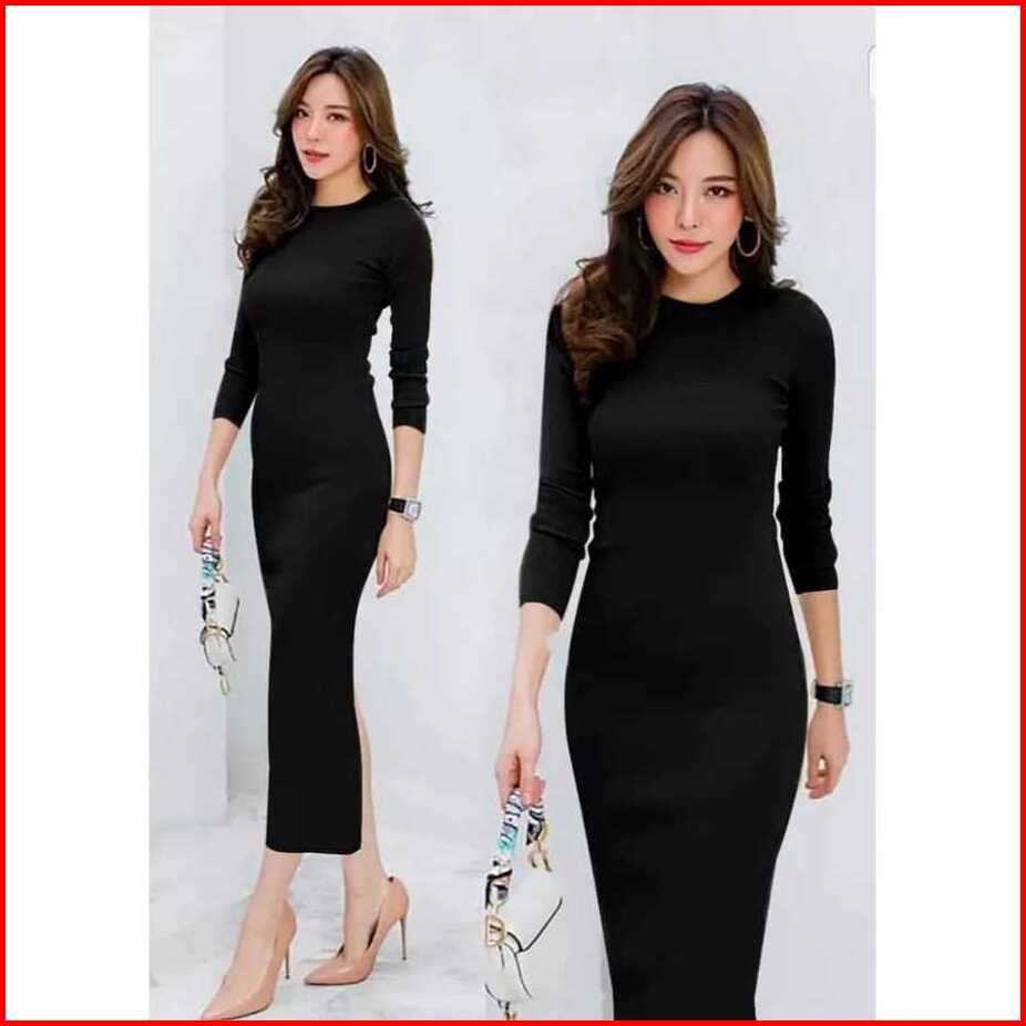 Dress Lexy Rajut Korean Casual Lengan Panjang Wanita Dewasa Bodycon Kekinian
