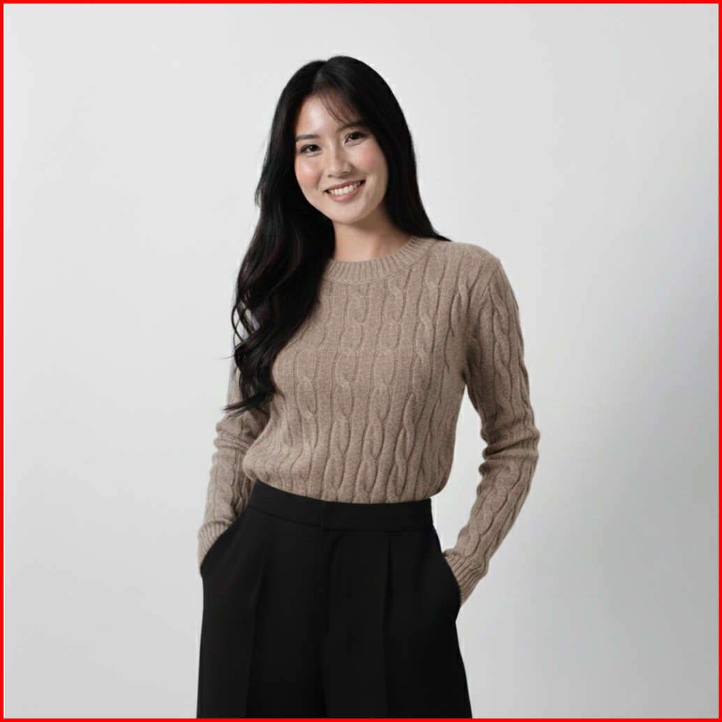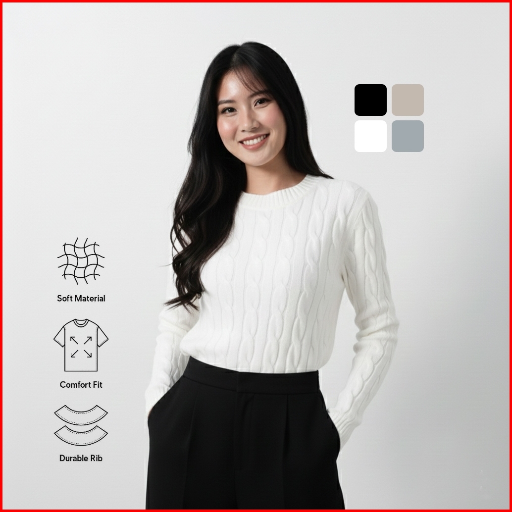 Mfk Longsleeve Cable Knit Sweater Wanita Korean Styl Knit Top Atasan Wanita Lengan Panjang