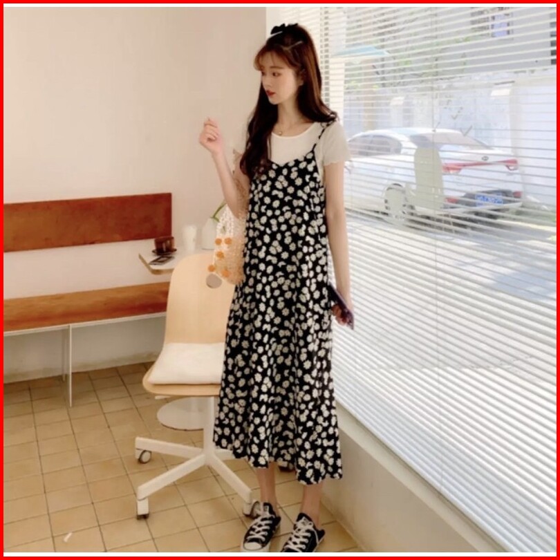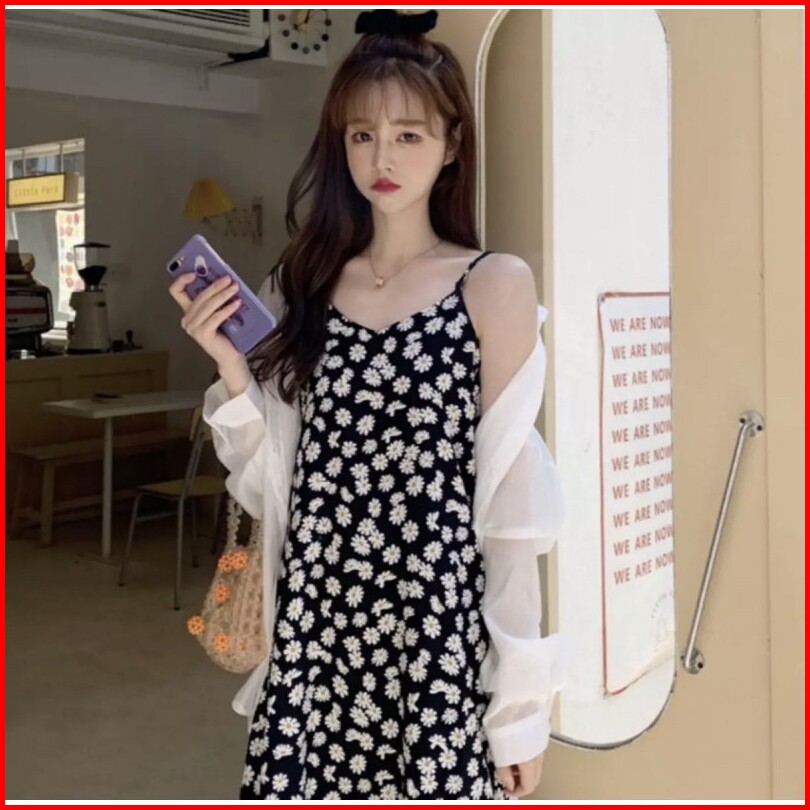 Dress Midi Korea Flora Bunga-bunga Hyget Ld 80 P 90