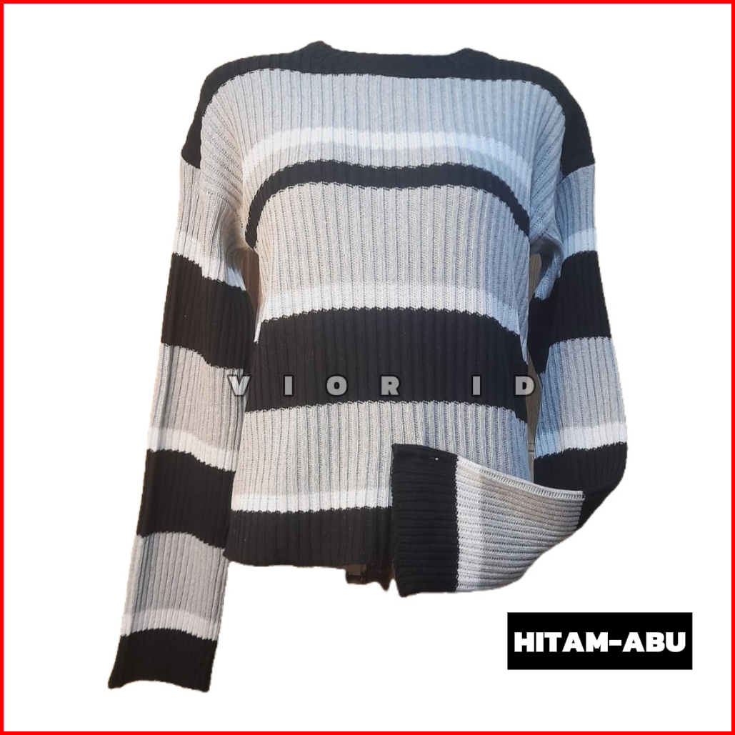 Azalea Knit Sweater Blouse Rajut Oversize Motif Garis