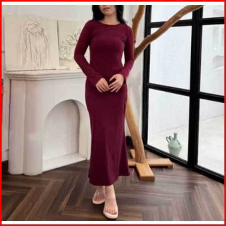 0rina Long Basic Dress Knit Wanita Korean Casual Dres Model Rajut Panjang Wanita Dewasa
