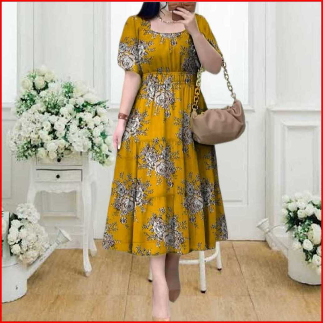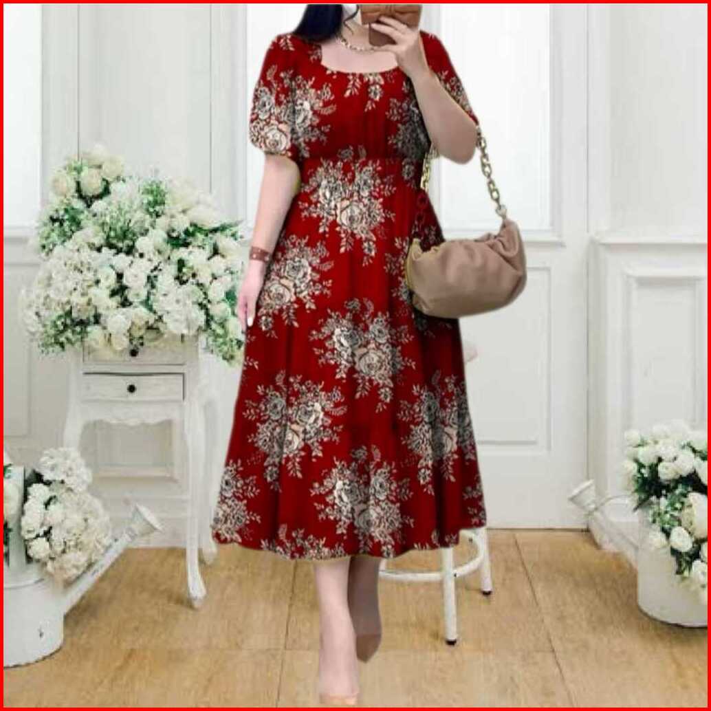 Baju Dress Wanita Floral Midi Dress Korea Style