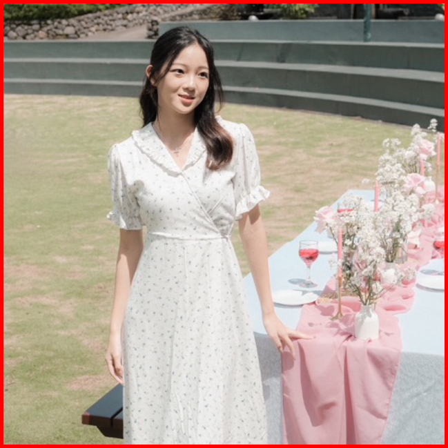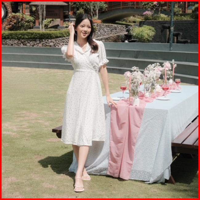 Joueta Sunbin Hwasa Dress Dress Wanita Korean Style Bahan Woven Motif Bunga Model Kimono