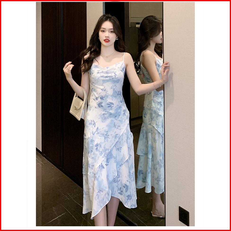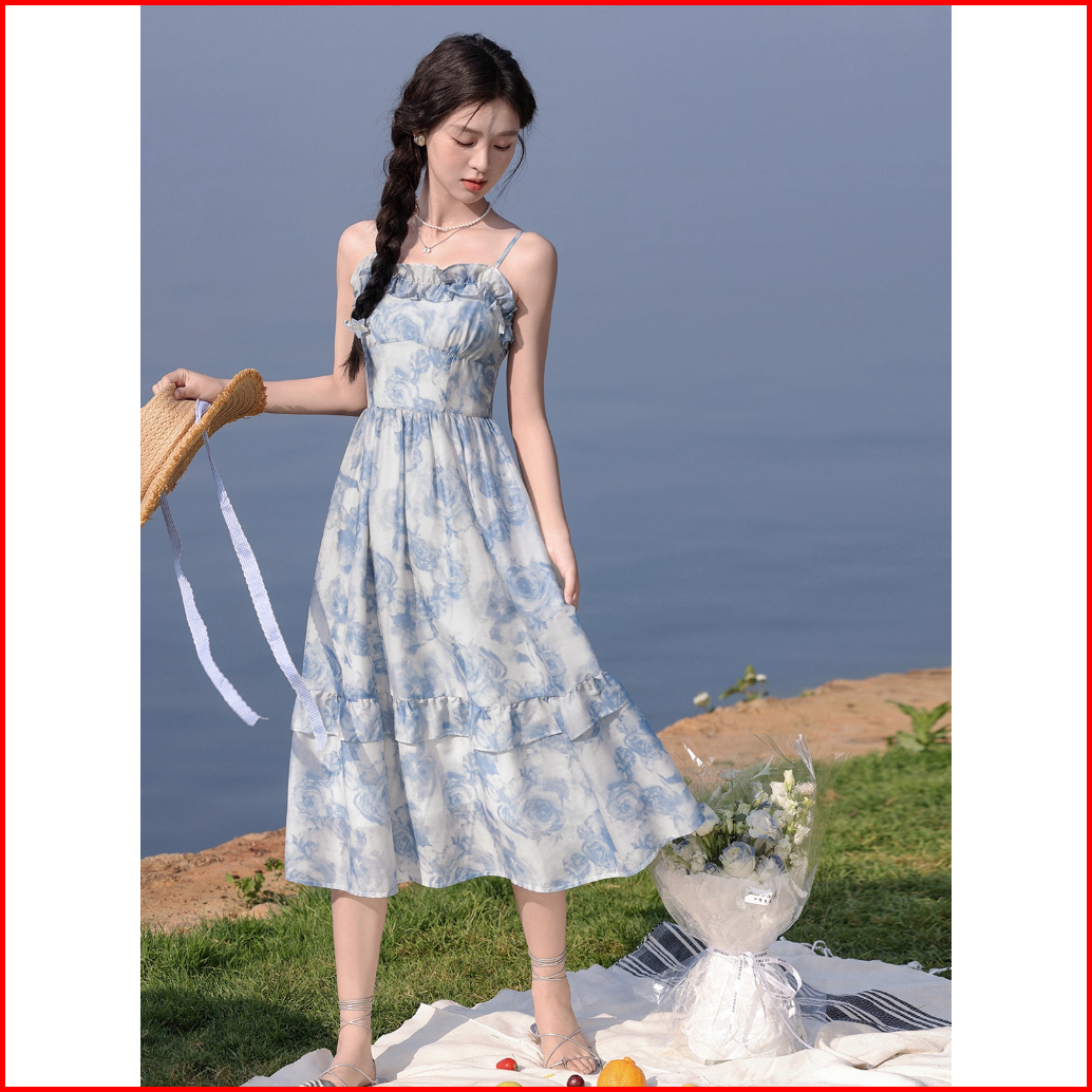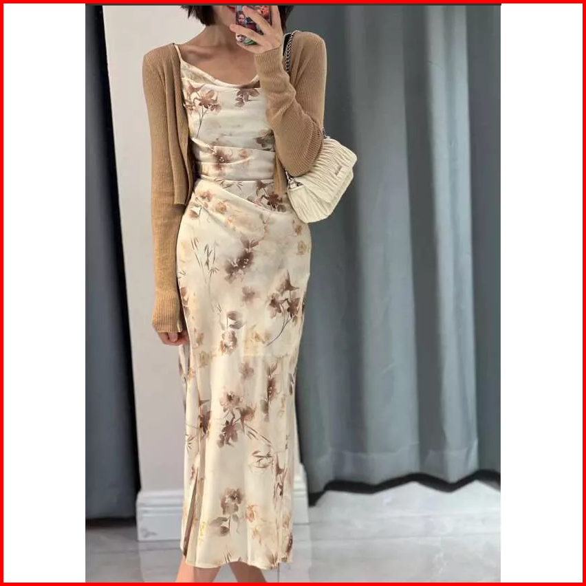 Emita Bloom Baju Dress Floral Gaun Pantai Wanita Kekinian Terbaru 2025 Casual Dress Midi Dress Motif Bunga Tanpa Lengan