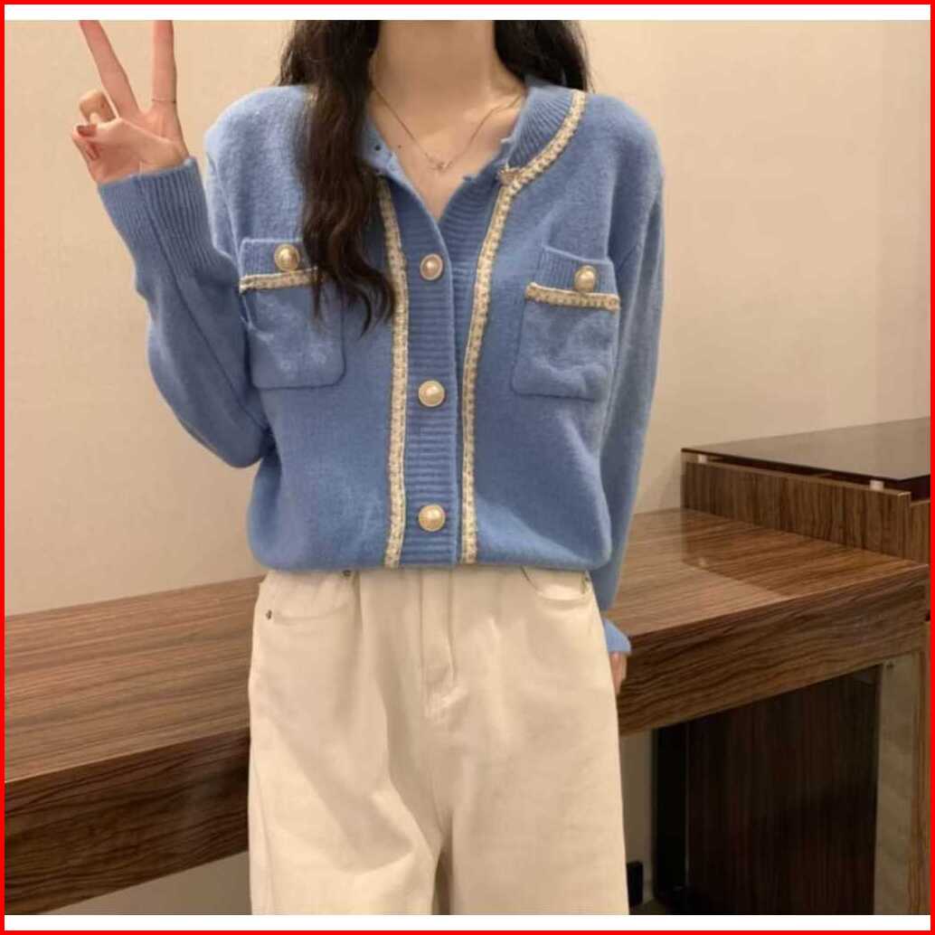 Gudang - Cardigan Wol Rajut Korean Style List Full Kancing Mutiara Kekinian
