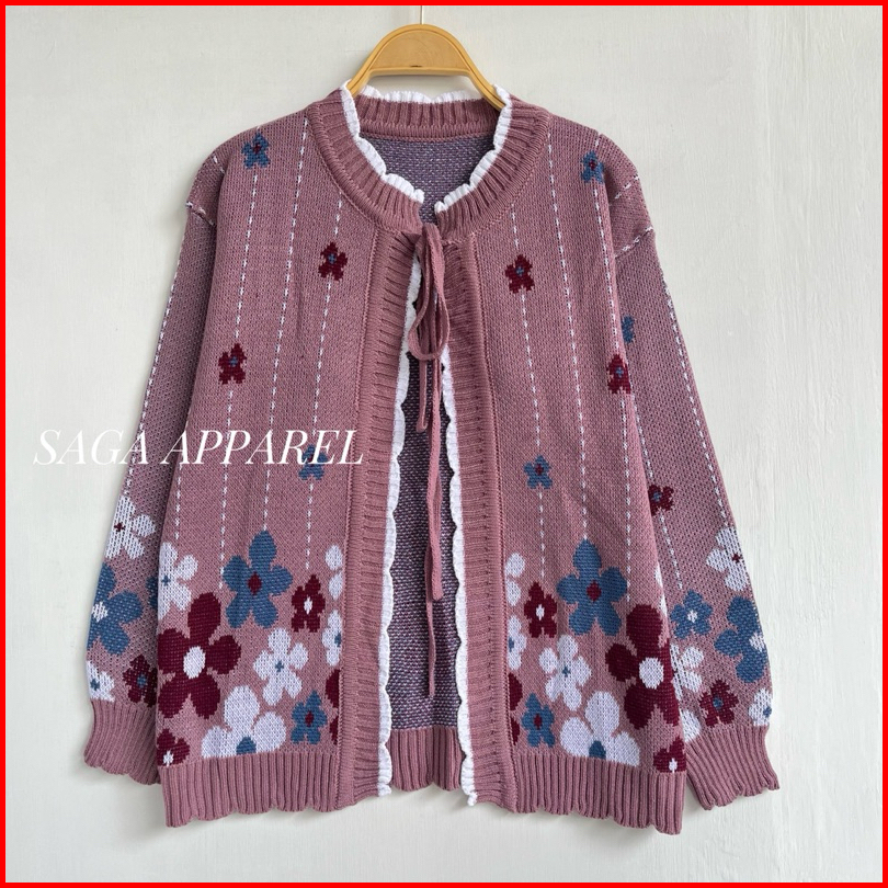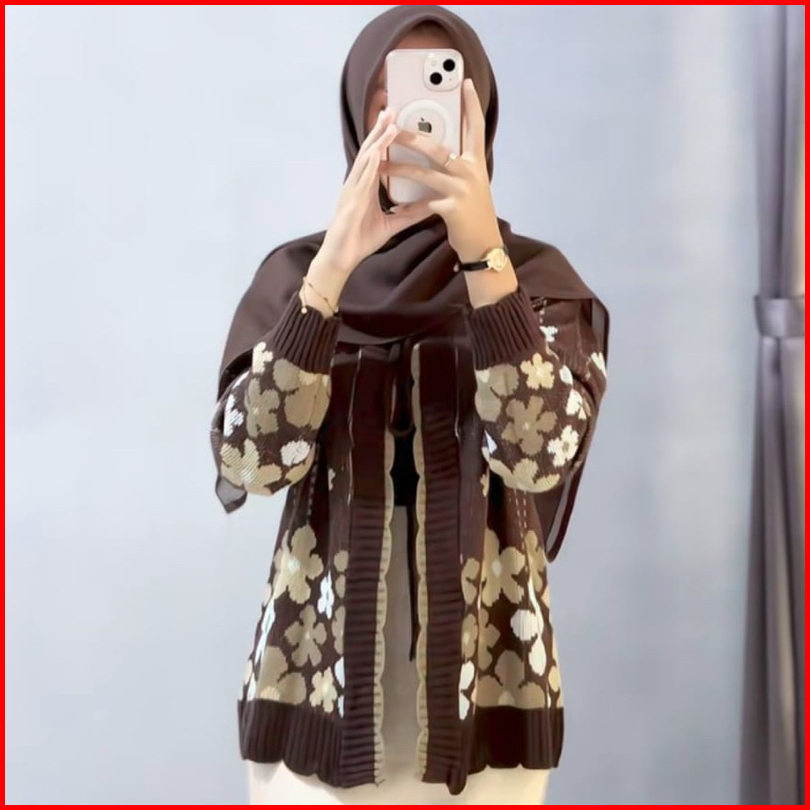 Raisya Cardy Rajut Wanita - Motif Flowers Premium