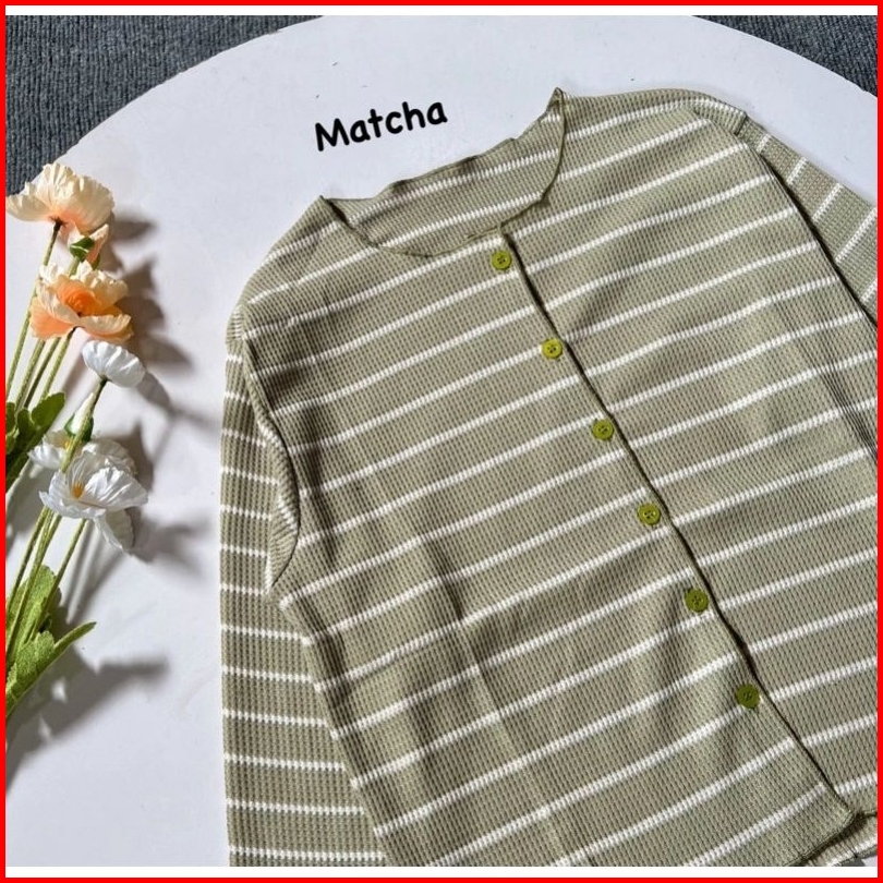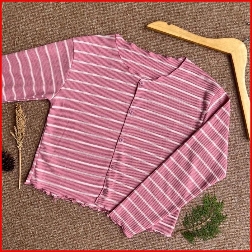 Knit Cardigan Cardigan Crop Cardigan Salur Wanita Kekinian Outer Crop