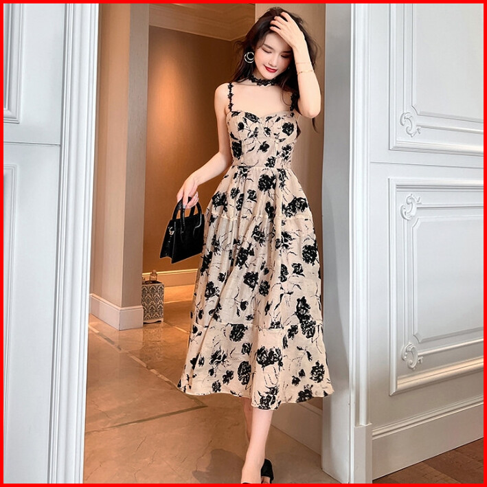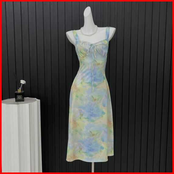 Hertha Duga Blue Floral Dress Biru Muda Pantai Wanita Korean Styleparty Midi Dress Import Terbaru 2025 Elegant Dress Sum