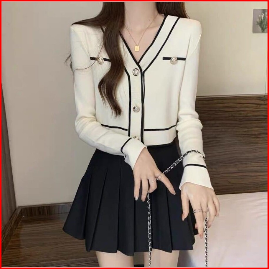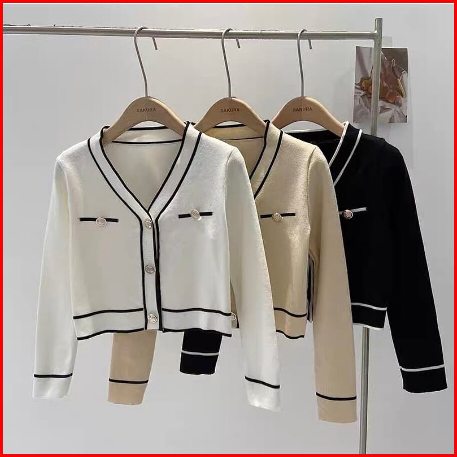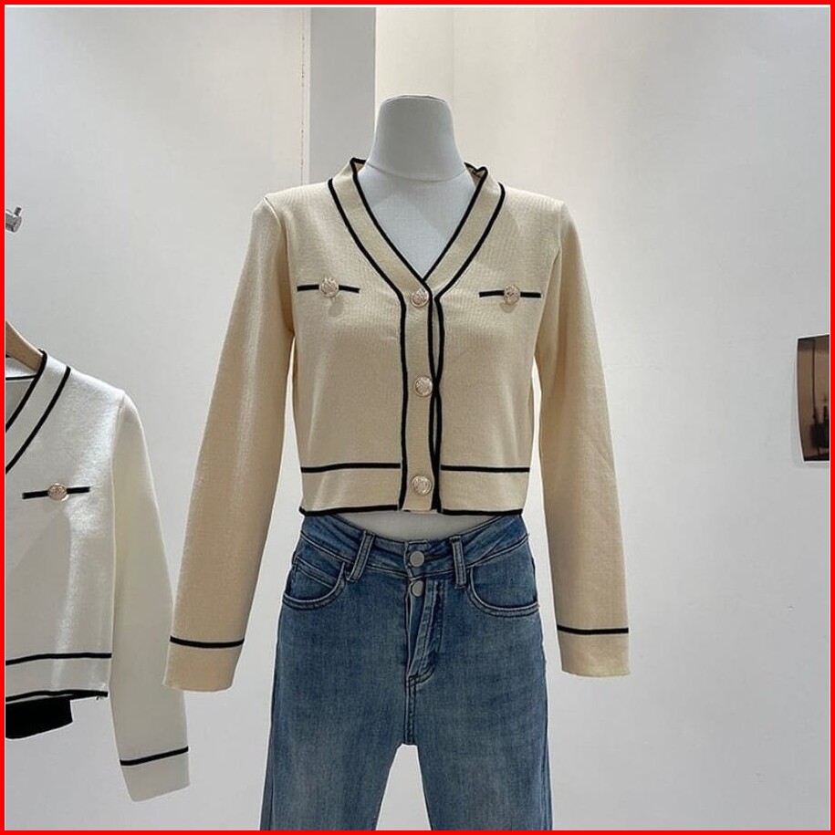 Lunna Crope Button Cardie Sweater - Cardigan Sweater Outer Wanita Atasan