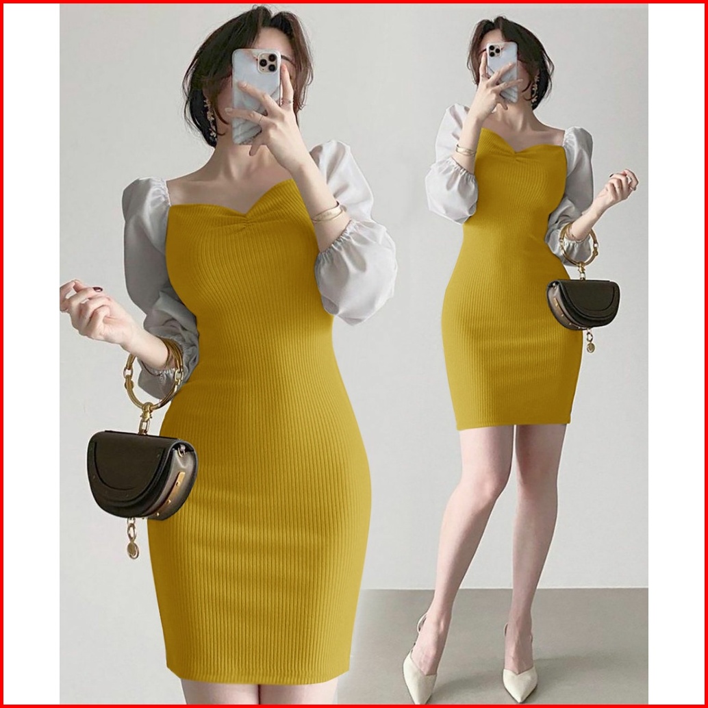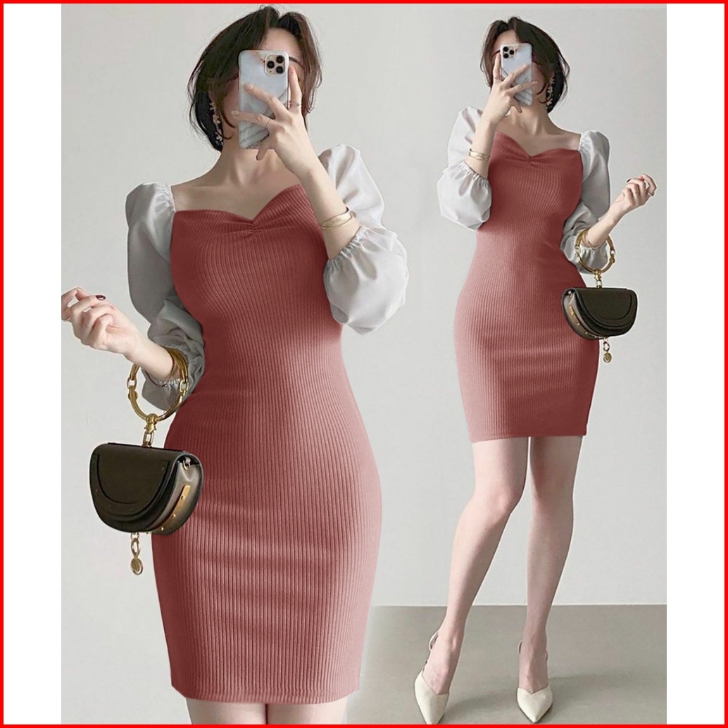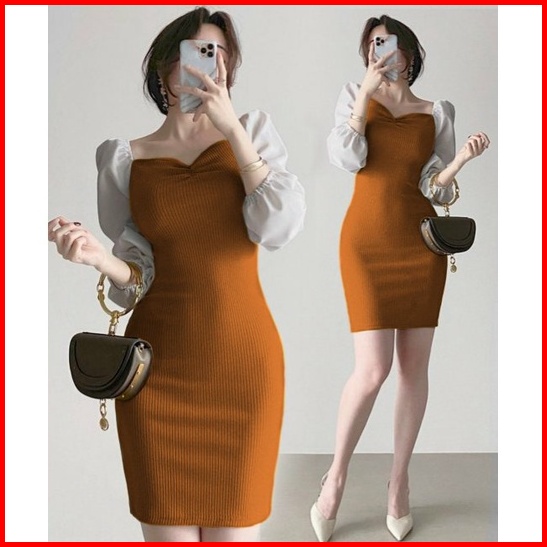 Wse390 - Dress Rajut Toyobo Dress Wanita Kasual Lengan Panjang Body Fit Sexy Mini Dress Uk Fit L To Xl Ld 100 - 110 Cm P