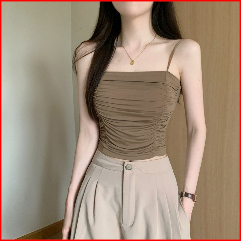 Tanktop Fashion Cup Bra Wanita Croptop Kerut Lembut T283 Kerut Atasan Wanita Korean Look