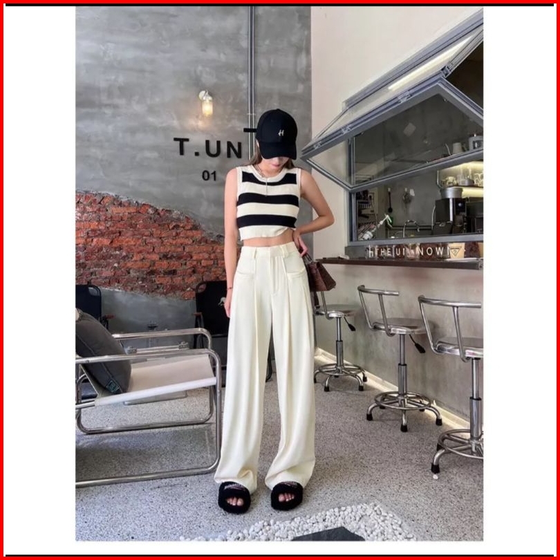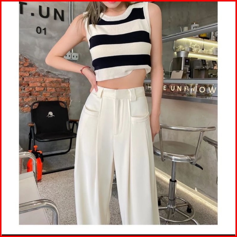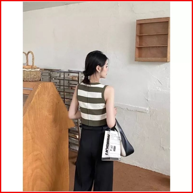 Tank Top Wanita Stripe Crop Top Casual Top Tank Top Korea