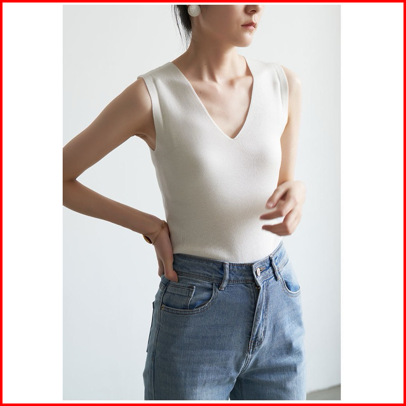 Tanktop Knit Basic Bahan Halus Premium T220 - Atasan V-neck Rajut Wanita - Tangtop Style Korean