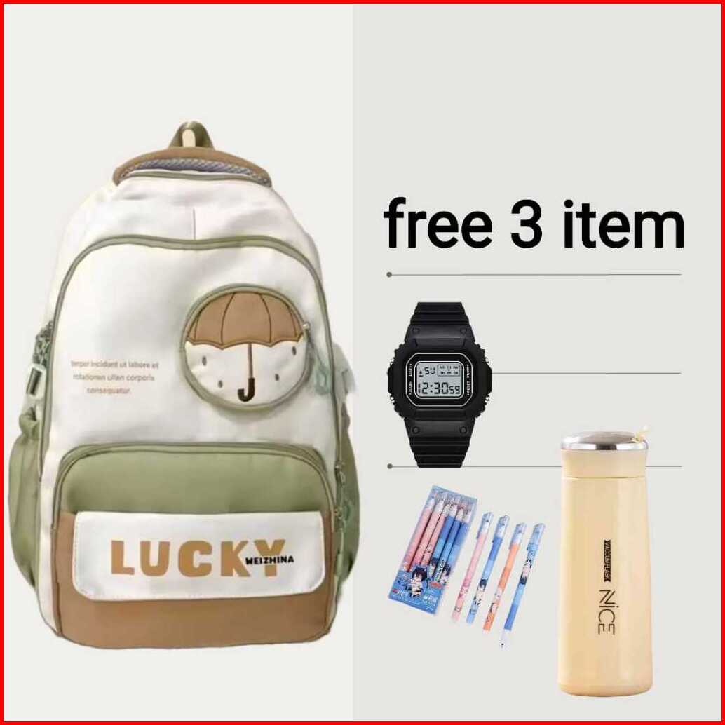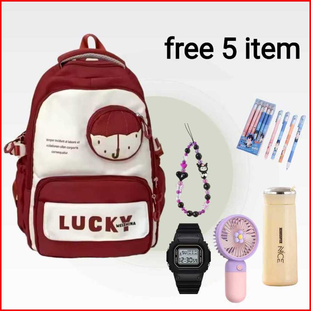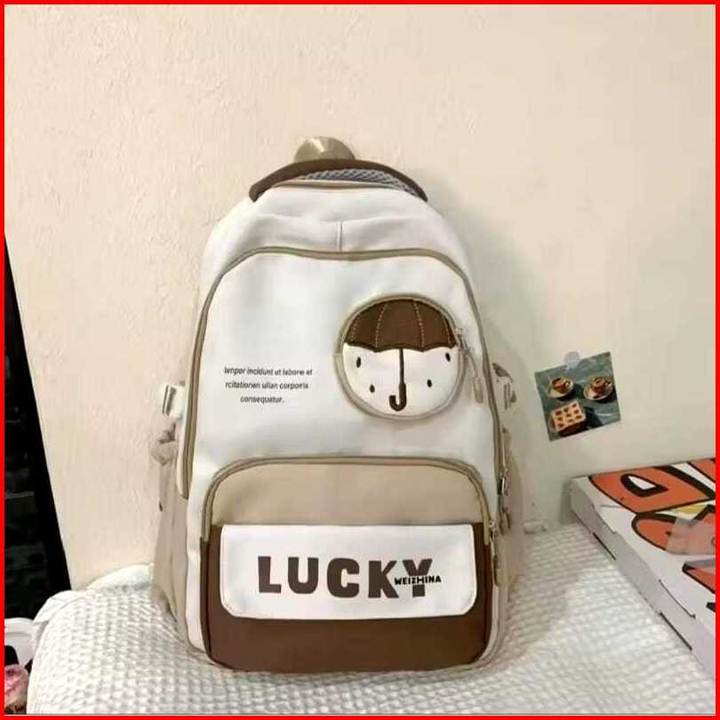 Flase.id - Lucky - Tas Backpack Lucky Tas Sekolah Anak Perempuan Bahan Kanvas Dinir Terbaru 2025
