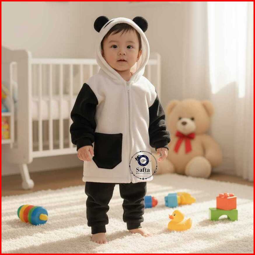 Sleepsuit Bodysuit Bayi Bulu Panda Laki-laki Dan Perempuan Jumper Jumpsuit Jaket Baju Bayi Bulu Hangat