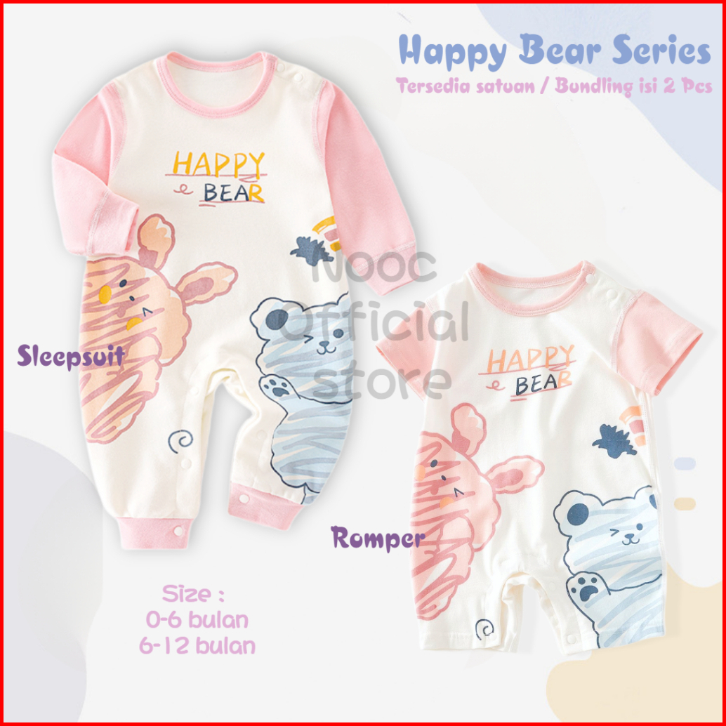 12 .12 Nooc Baju Anak Perempuan Romper Bayi Motif Happy Bear Sleepsuit Motif Baju Bayi Perempuan