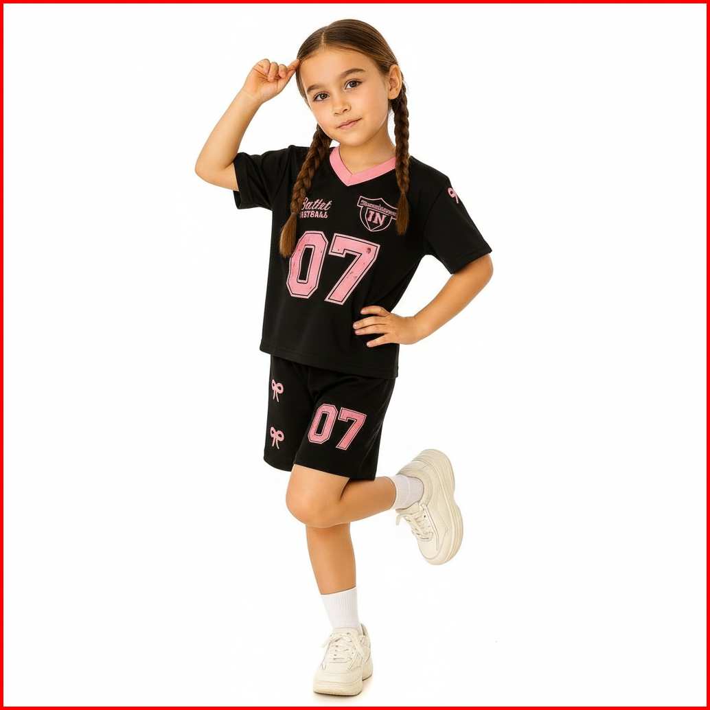 Caifu Setelan Baju Anak Perempuan Model Jersey Celana Pendek Anak Anak 2-10 Tahun Bunda