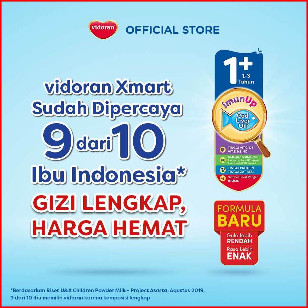 Vidoran Xmart 3 Imun Up Susu Formula All Variant 925 G 2 Pcs - Exp 09.2026