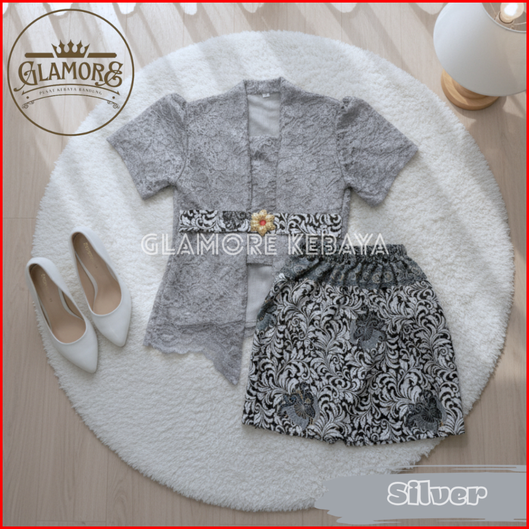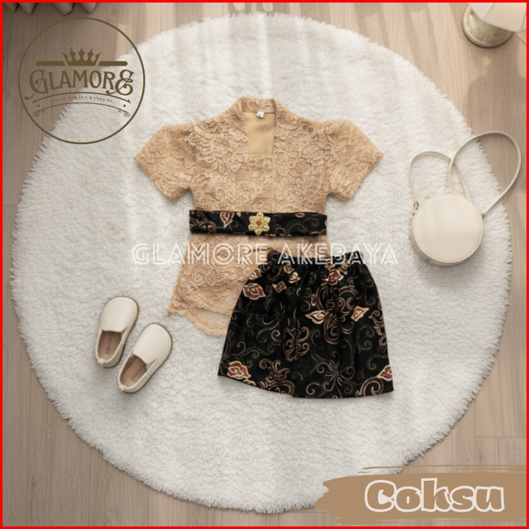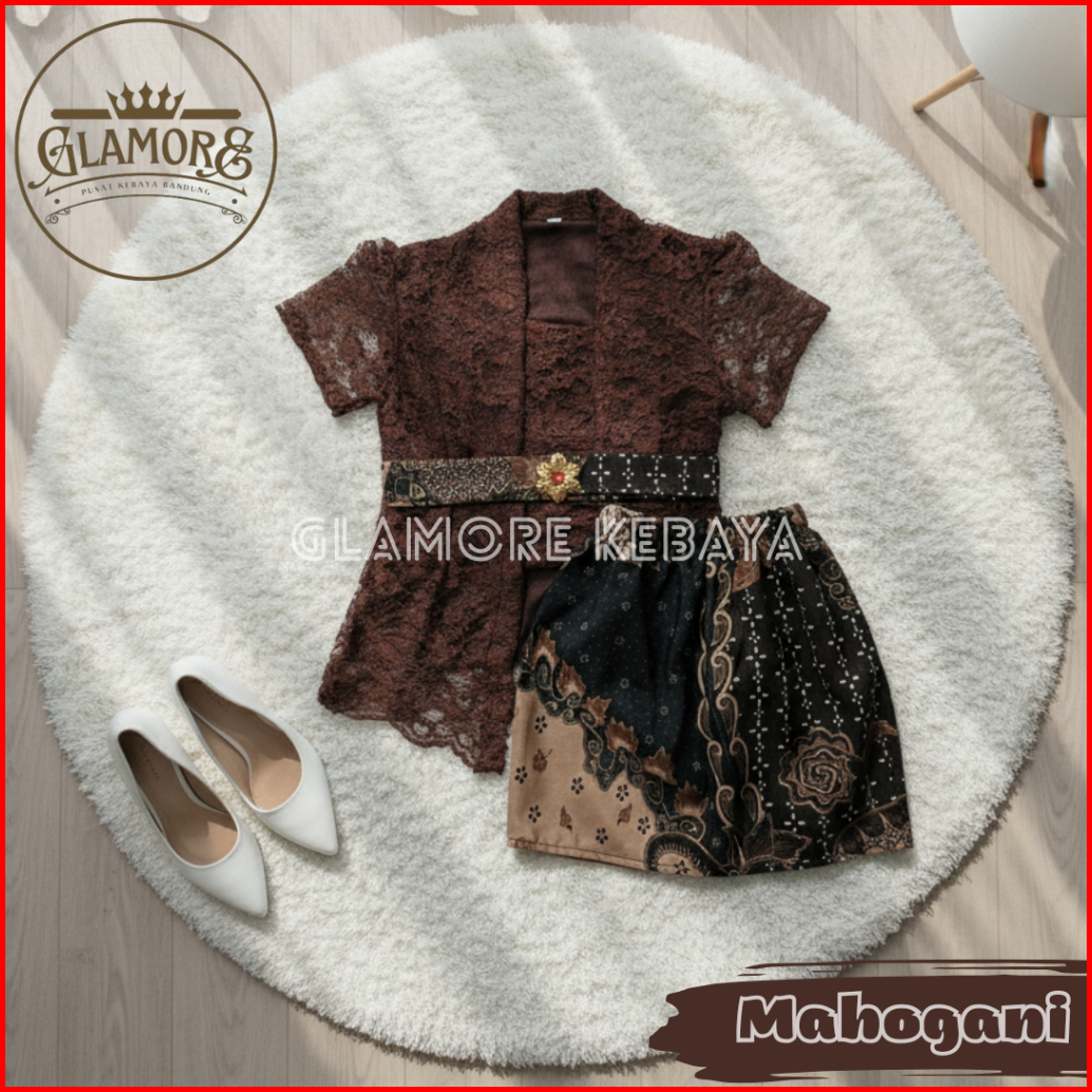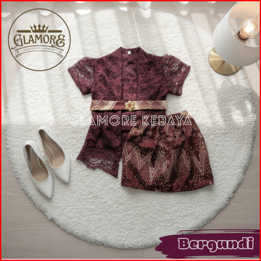 Setelan Kebaya Anak Perempuan Kutubaru Rok Span Pendek Brukat Full Furing Usia 1 Sampai 8 Tahun