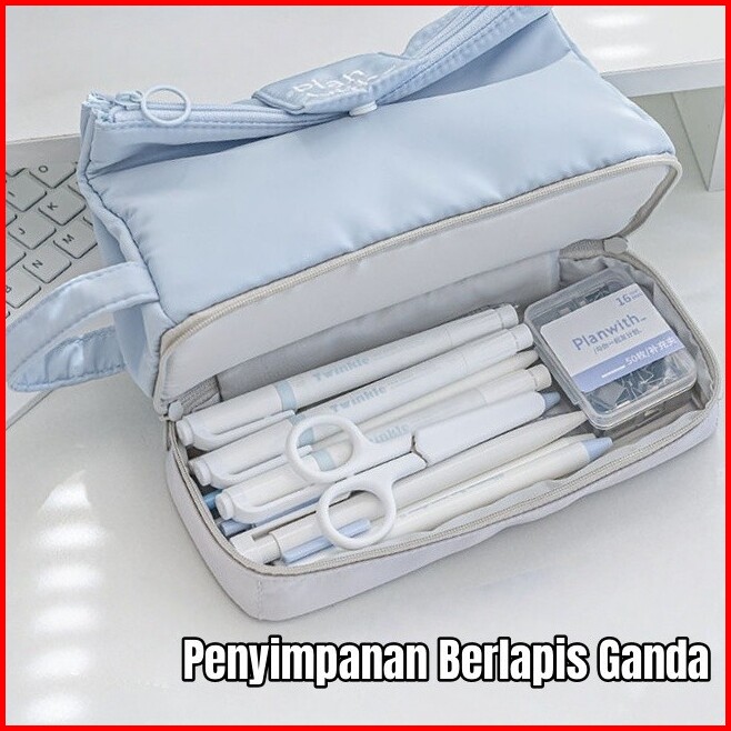 Readytas Pensil Besar Double Layer Tas Penyimpanan Siswa Alat Tulis Tempat Pensil Ritsleting Kapasitas Besar