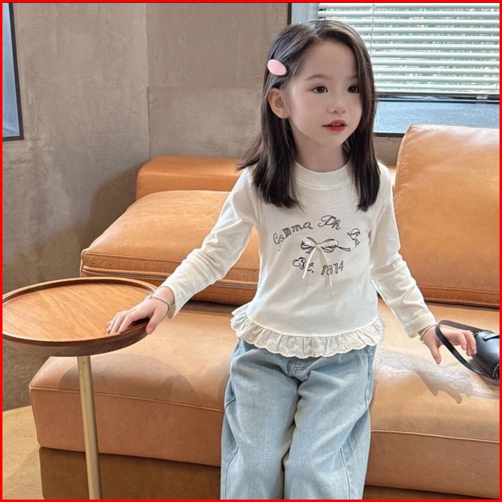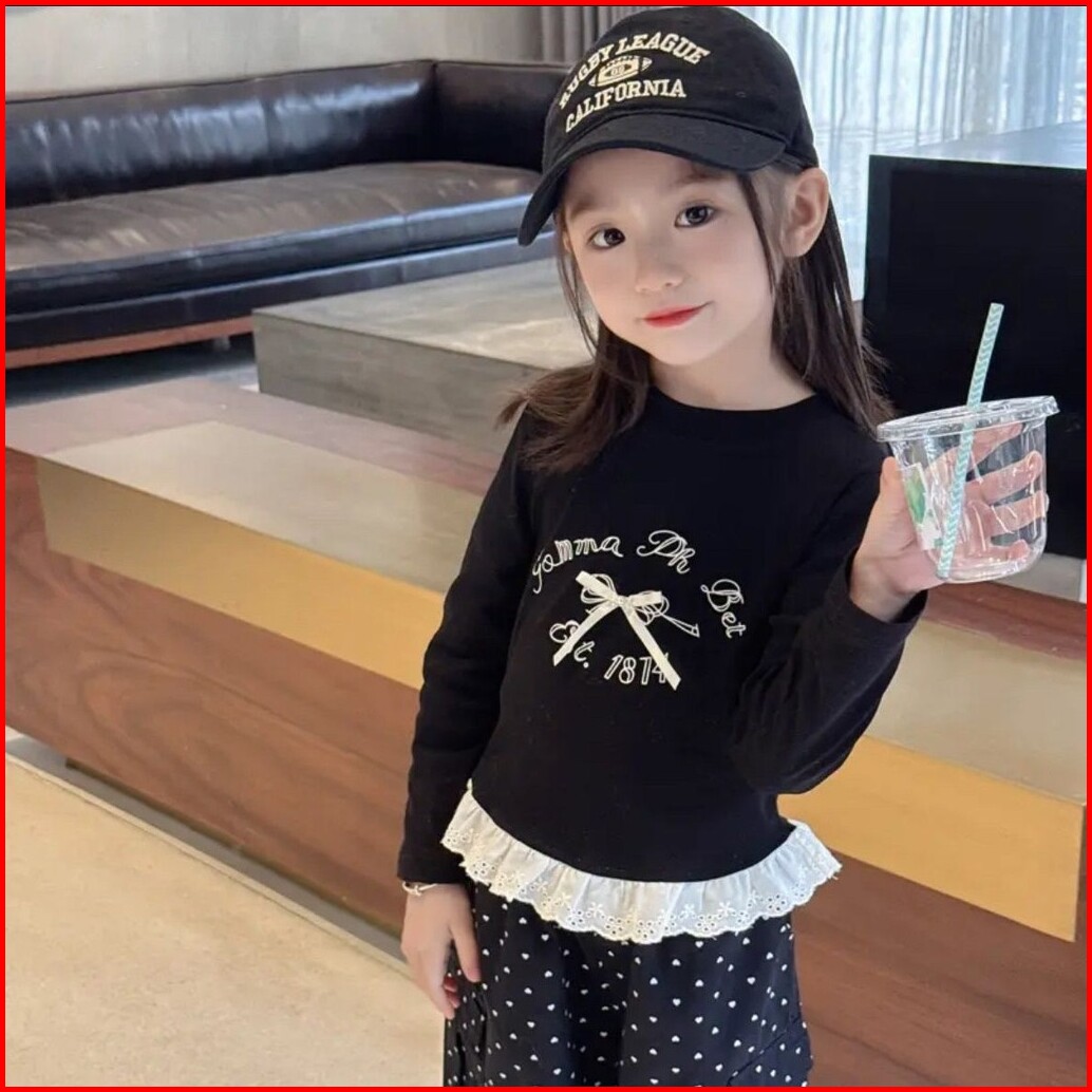 Baju Anak Perempuan Lengan Panjang Yuna Ribbon Pita Strech Korea Style