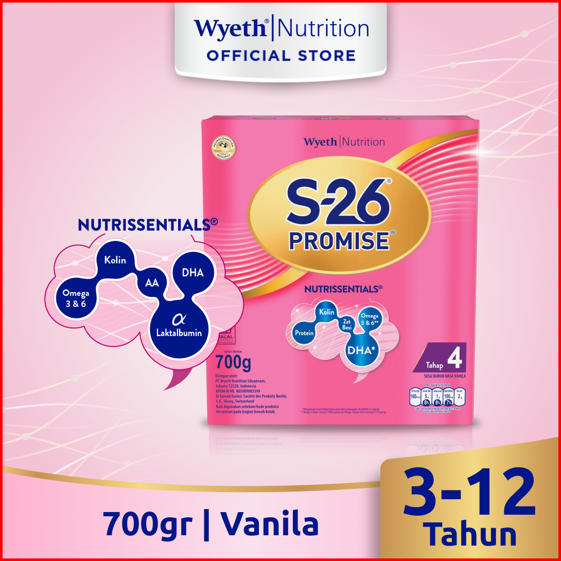 S-26 Promise Tahap 4 Vanila Susu Bubuk Untuk Anak Usia 3-12 Tahun Kotak 700 Gr