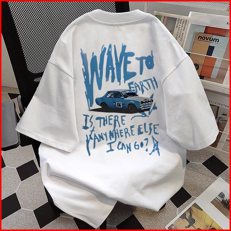 Kaos T-shirt Lengan Pendek Katun Keren - Desain Mobil Teks Wave To Earth Unik