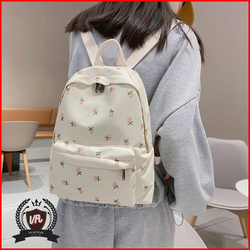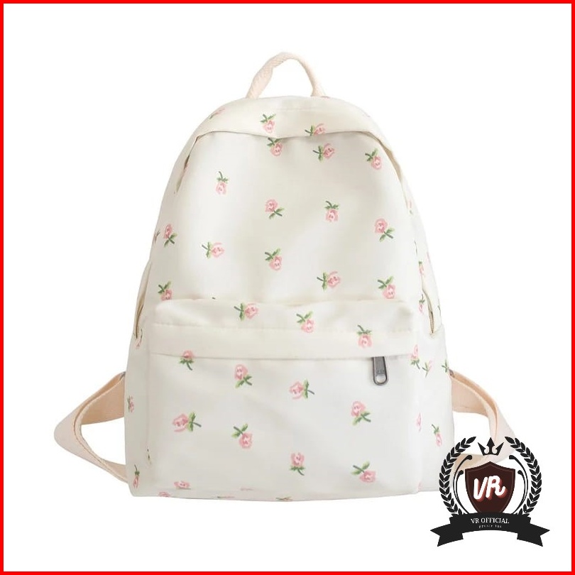 Ransel Mini Motif Flower Untuk Wanita Tas Bahu Siswa Perempuan Kapasitas Besar Tas Sekolah Tas Buku