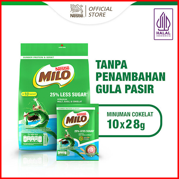 Nestle Milo Less Sugar Susu Cokelat Rendah Gula Isi Sachet 10 X 28g