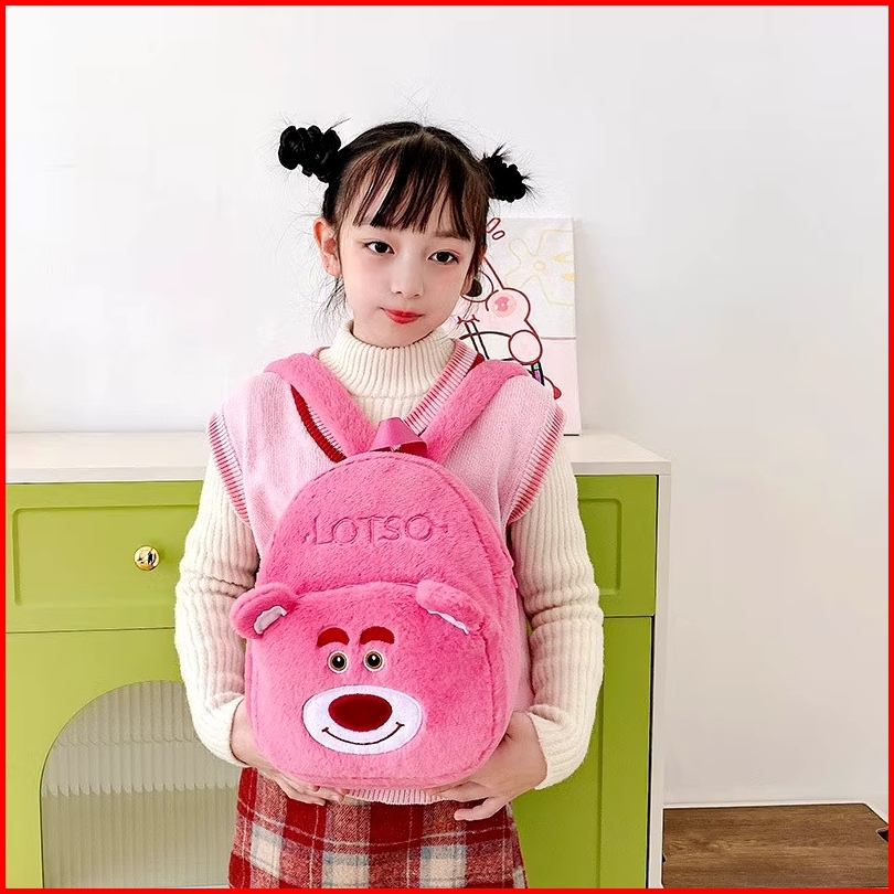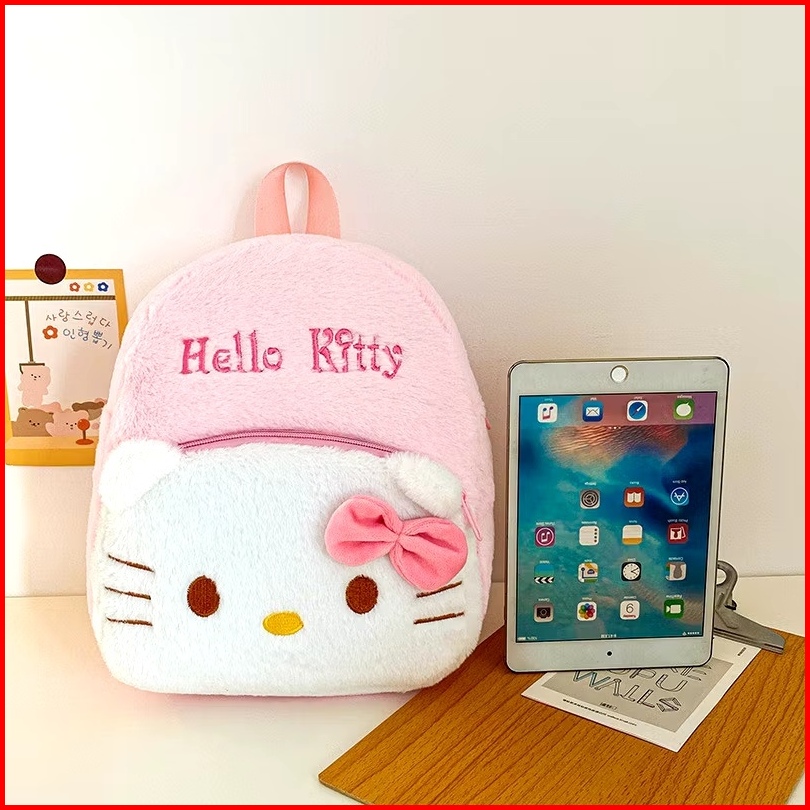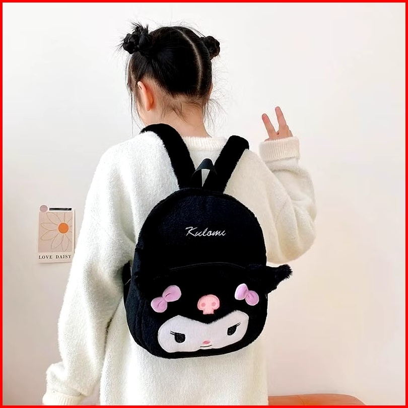 Tas Bulu Karakter Sanrio Tas Ransel Anak Sekolah Perempuan Motif Boneka Cinnamoroll Melody Kuromi Lotso Backpack Lucu