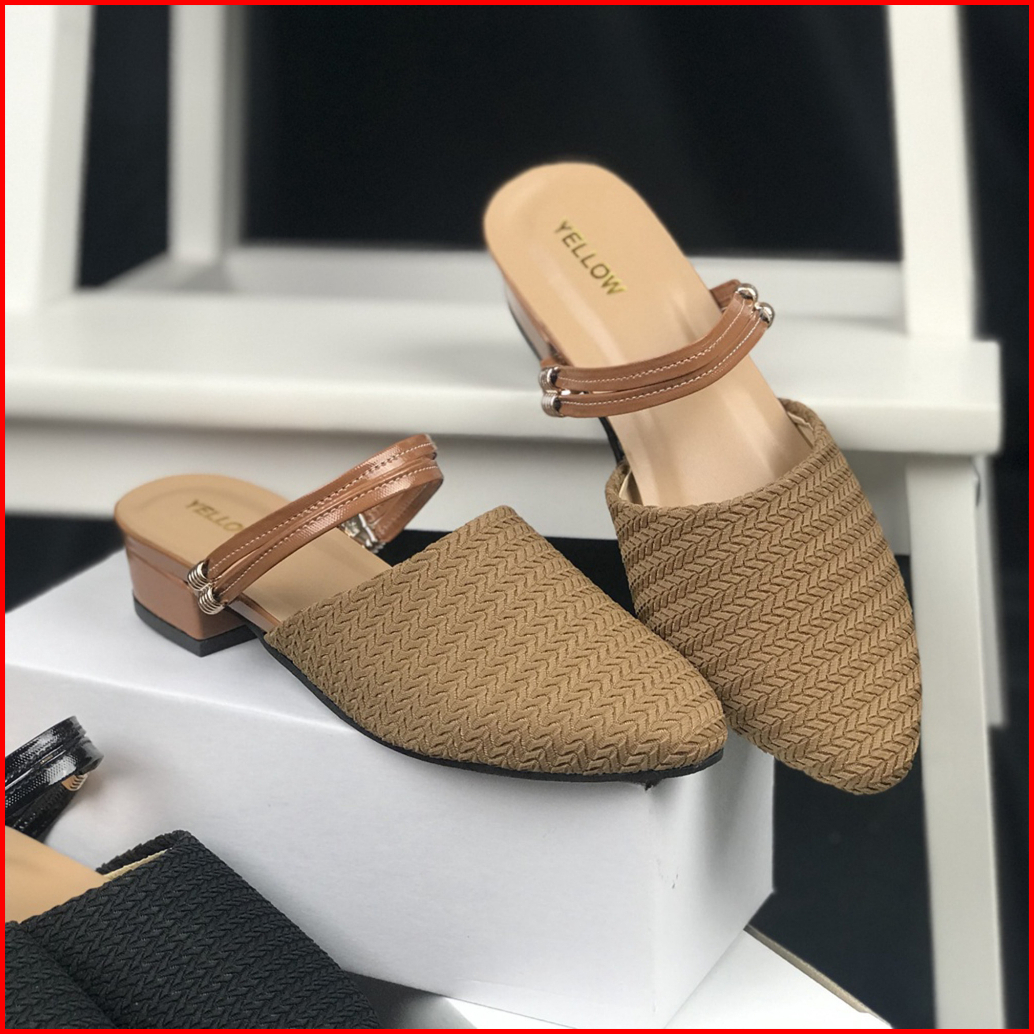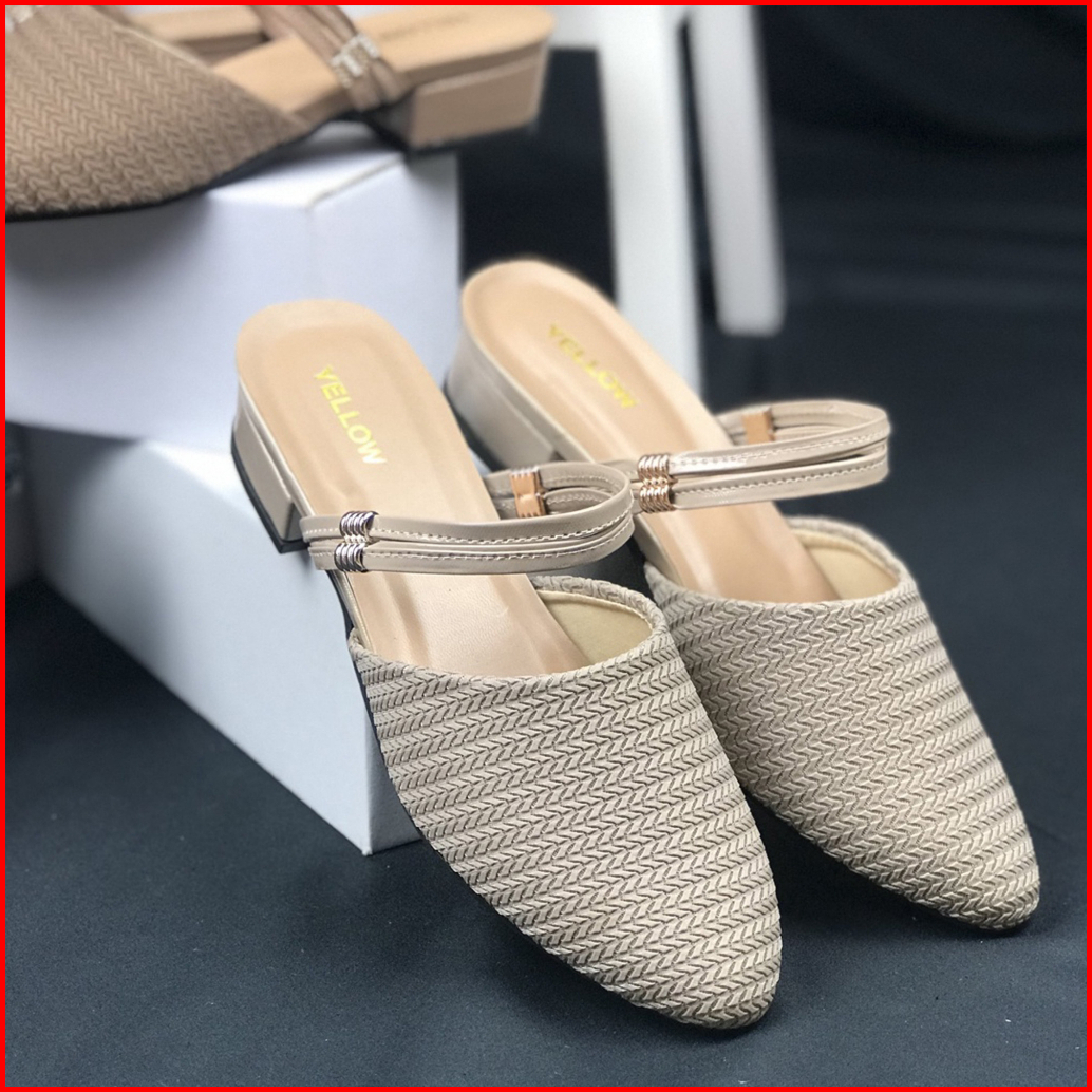 Id Briana Sandal Wanita Slip On Hak Mules 3cm Ujung Runcing Bahan Rajut Size 37-40 - Hk 03