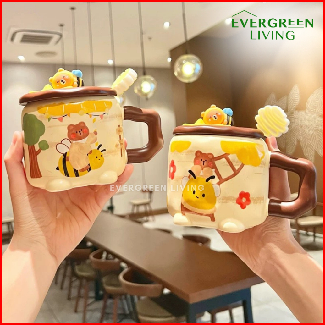 Evergreen Cangkir Gelas Panda Coklat Keramik Lucu Cute Ceramic Mug Cup Kucing Lucu Klasik Unik Tahan Panas Bahan Keramik