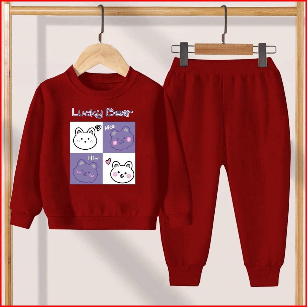 Ymf - Setelan Sweater Oblong Lucky Bear Anak Usia 3-12 Tahun