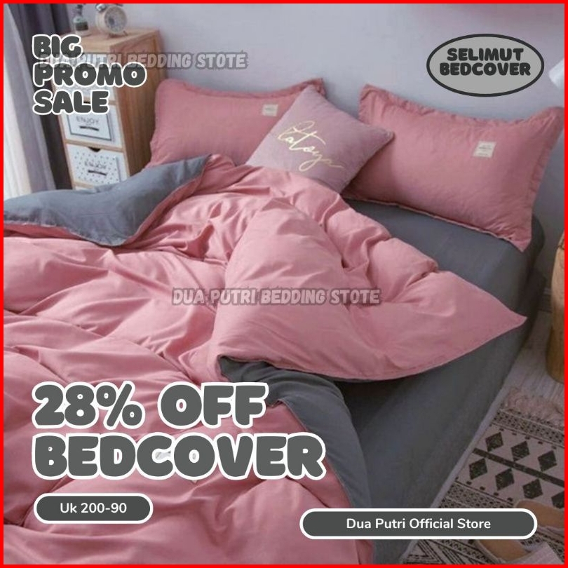Bedcover Set Sprei Twotone Ukuran 120x200 Tinggi Sprei 20cm.30cm.40cm Katun Halus Lembut Free Sarban Dan Sarung Guling