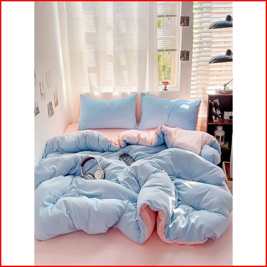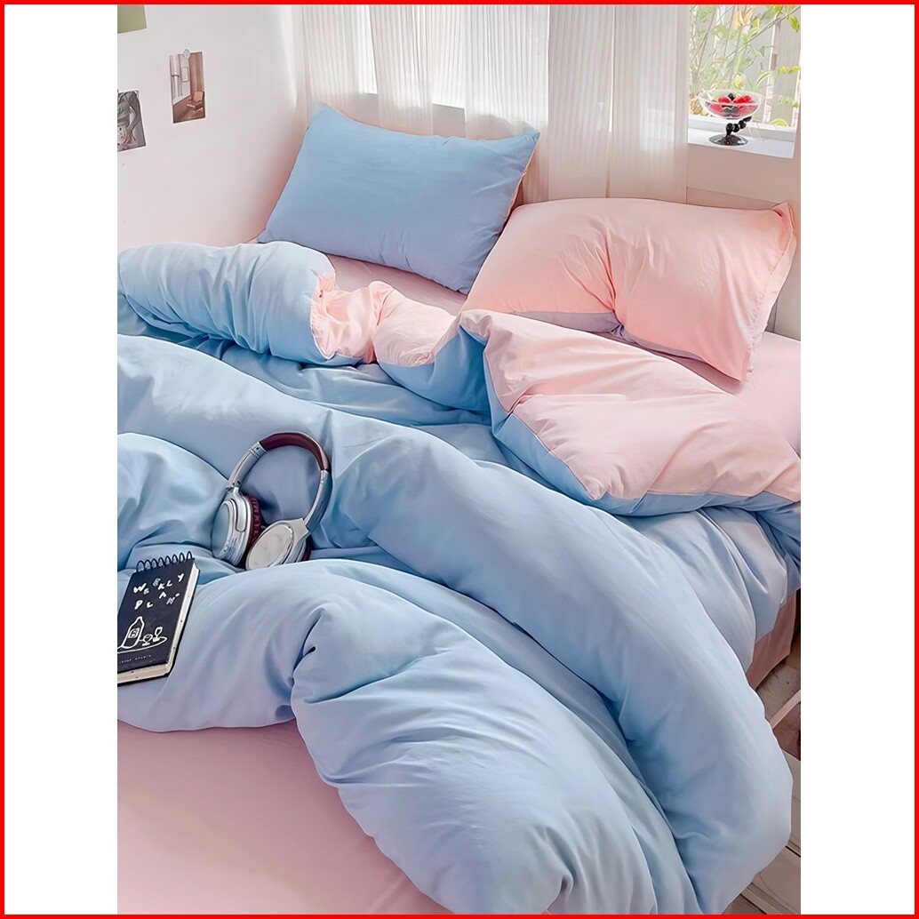 Sprei Dan Selimut Bedcover Set Pink Muda Mix Biru Muda Ukuran Lengkap - Free Tas Bedcover Tebal