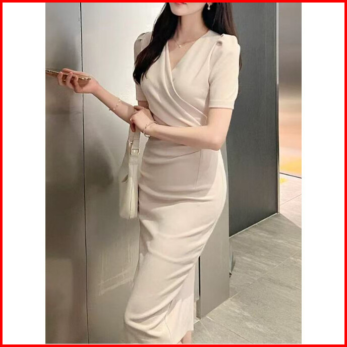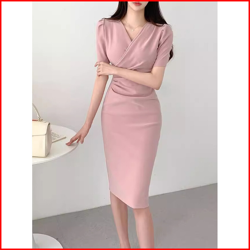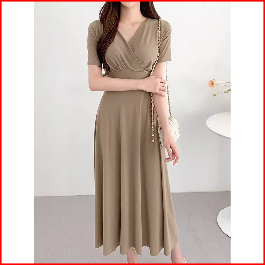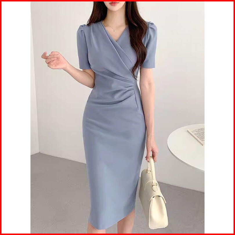 Dress Biru Pantai Wanita Midi Dress Polos Kekinian Terbaru 2025 Korea Dress Kondangan Simple Elegant Casual Dress