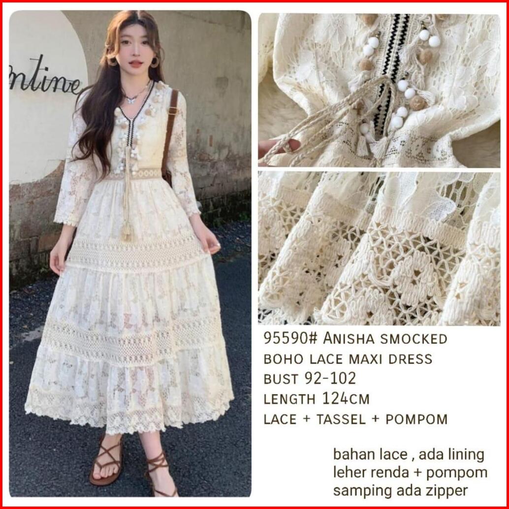 Sale Murah Dress 95590 3m Three M Anisha Smocked Boho Lace Maxi Dres Korea Korean Fashion Harga Grosir Laris Import Terj