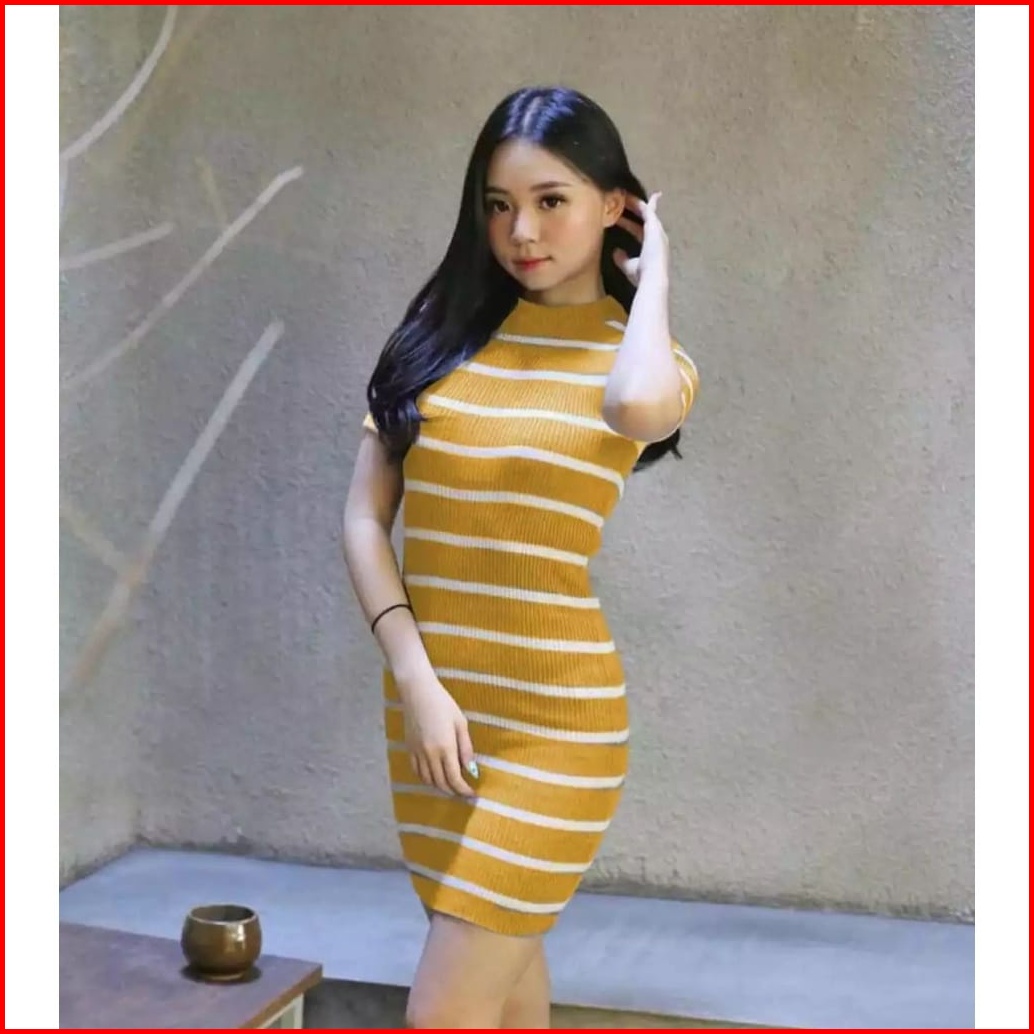 Sakastoree Mini Dres Rajut Salur Dewasa Kekinian Terbaru Termurah
